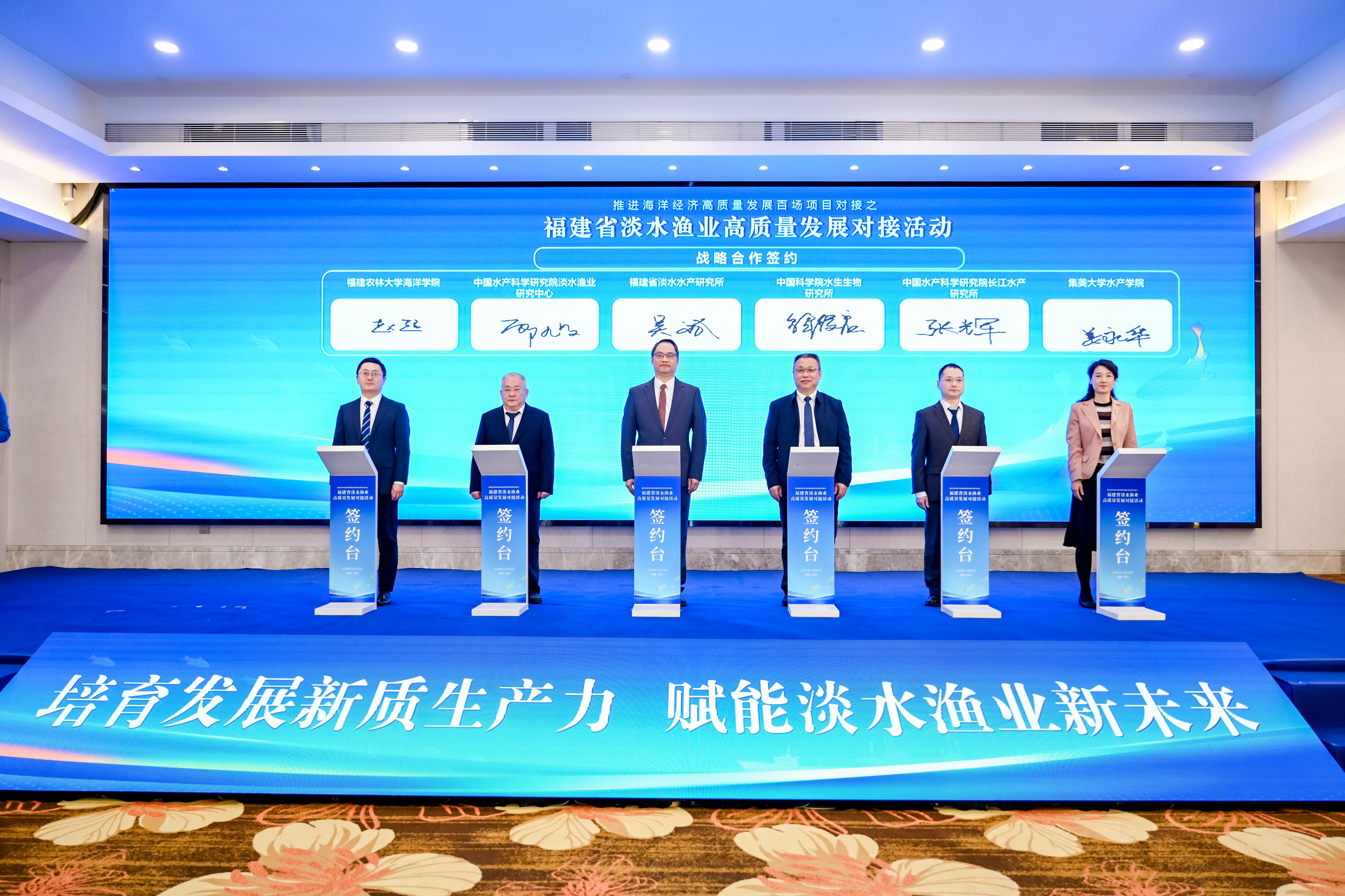 本次活动由福建省淡水水产研究所承办,以“培育发展新质生产力,赋能淡水渔业新未来”为主题,聚焦科技创新、成果转化和产业协作,加快培育发展淡水渔业新质生产力,推动全省淡水渔业领域提质增效。会上发布了福建省淡水水产种业创新成果——马口鱼“福马1号”新品系,并设置集中签约环节,省淡水所与科研院所、高校及福建省省级水产良种场(淡水)签署战略合作协议,推动良种繁育能力提升;同时相关高校、科研院所和企业签订项目对接协议,为科研成果落地转化拓展新空间。