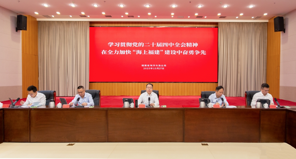 会议指出,党的二十届四中全会是一次高举旗帜、团结奋进,承前启后、继往开来,擘画蓝图、催人奋进的大会。全会审议通过的《中共中央关于制定国民经济和社会发展第十五个五年规划的建议》,是乘势而上、接续推进中国式现代化建设的又一次总动员、总部署,是指导“十五五”时期经济社会发展的纲领性文件。全省海洋与渔业系统要认真按照省委、省政府部署要求,强化海洋强省建设首责部门担当,立足福建海洋优势,树牢现代海洋经济意识,统筹开发与保护两种关系,抓好高质量发展和高水平安全两件大事,全力做好海洋开发利用保护这篇大文章,为经济大省挑大梁注入更多蓝色动能,在全力加快“海上福建”建设中奋勇争先,以实干实效坚定拥护“两个确立”,坚决做到“两个维护”。
